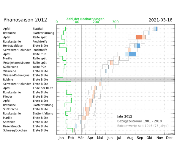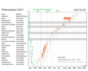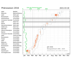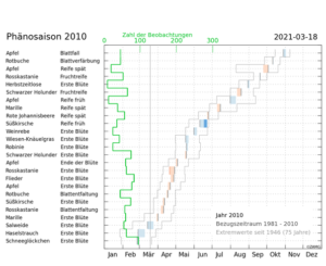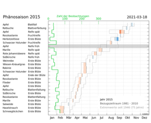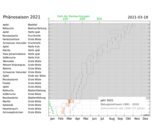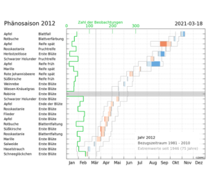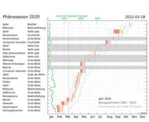 Phänologische Uhr des DWD, Vergleich 2020 mit dem langjährigen Mittel